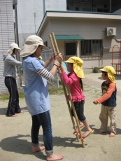 6月の父の日(保護者参観日)のお家の方に、竹馬を作っていただきます。