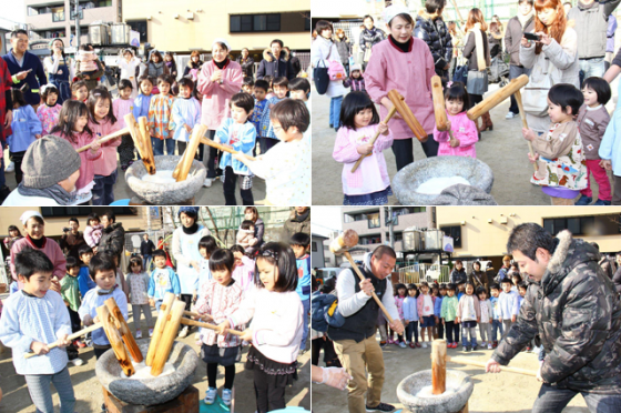 ホールでは、黄な粉餅、ぜんざい、大根おろしなど、思い思いの食べ方でおいしくいただきました。