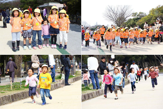 年少600m(300mで折り返し) 年中1Km(500mで折り返し) 年長2Km(一周)をみんな完走しました。