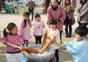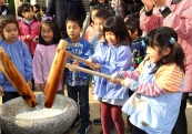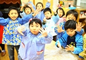 その後を、子ども達が全員ついて、砂糖醤油や、黄な粉餅、おぜんざい、大根おろし餅などでお腹一杯食べました。年の初めに、真っ白のお餅を食べて、元気に今年もスタートすることができました。
