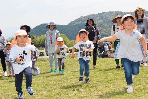 「お母さん、見ててね。」はじける笑顔で力いっぱい走ります。