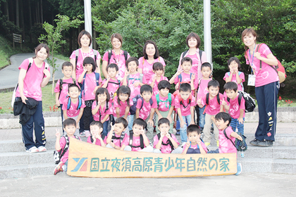 年長ひかり組は、みんなで染めたTシャツを着て夜須高原自然の家へキャンプに行きました。台風が近づいている時だったので日帰りになりましたが、 川遊び、ウオークラリー、記念の森での遊びなど、たっぷり自然を満喫してきました。