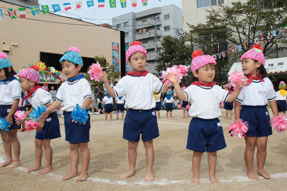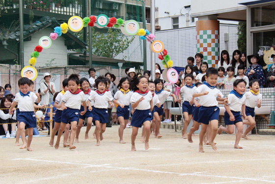 大きなかけ声とともに勢いよく入場してきました。光組さんは演技だけでなく、放送をしたり雪組の手をつないだ りして、リーダーとして運動会を立派に盛り上げてくれました。