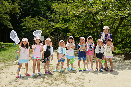 川遊びをした後は、虫取りをしました。トンボやチョウは逃げるのがはやくて、捕まえるのが難しかったね。