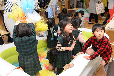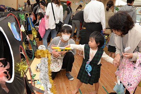今年のバザーは、宇宙をイメージした体験コーナーや、わくわく探険をしている気分になるゲームコーナー、そしてクオリティの高い手作り品など、新しいアイデア一杯で大変盛り上がりました。終了後も、各クラスの枠を超え、保護者の方々が親しくお話をされている様子を見て、バザーが交流を深めるよいきっかけづくりになったことを感じています。