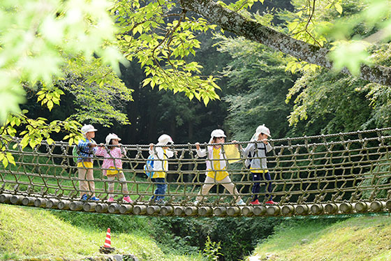 2日目は、ウオークラリーをしました。ゴールは広い記念の森。そこには巨大なヤスゴン(アスレチック)が住んでいました。友達と一緒に、長い長いすべり台をスイスイすべったり、広い芝生の上を走り回ったりして、思いっきり遊びました。暑さを吹き飛ばすぐらいの、思い出いっぱいのキャンプになりました。