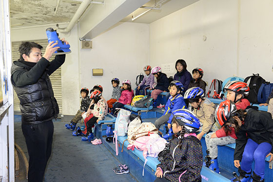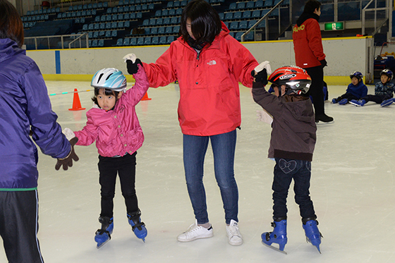 スケート場につくと、コーチから靴の履き方やリンクの上での立ち方など、一つ一つ丁寧に教えてもらいました。はじめは立つこともできなかった子ども達でしたが、何度も転びながら、いつの間にか全員が滑れるようになりました。レッスンが終わった後も、「まだ滑りたいなあ」「また、お母さんたちと行ってみよう」という声が聞かれました。