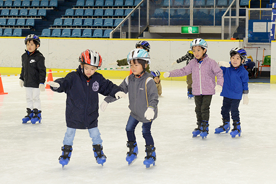 11月28日、光組(年長)さんはスケート教室に行きました。初めてスケートをするお友達が多くて、「早く滑りたいなあ」と、この日をとても楽しみに待っていました。