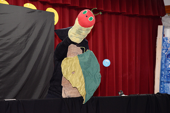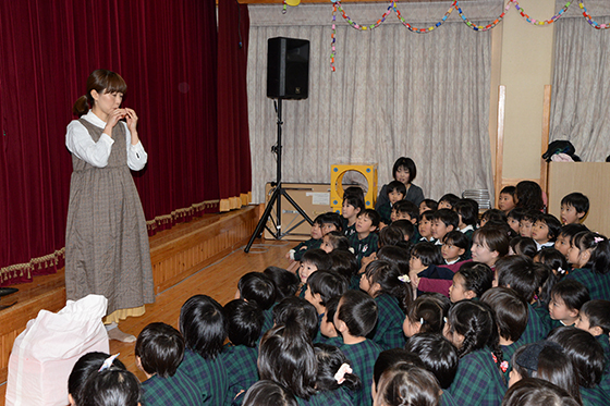 子ども達の発表の後は、劇団「いもむし」の人形劇を見たり、ステキな音色のオカリナに聴き入ったりして、大人も子どももとても楽しい時間を過ごすことができました。最後に、サンタさんが子ども達にクリスマスプレゼントをしてくださって大喜びでした。
