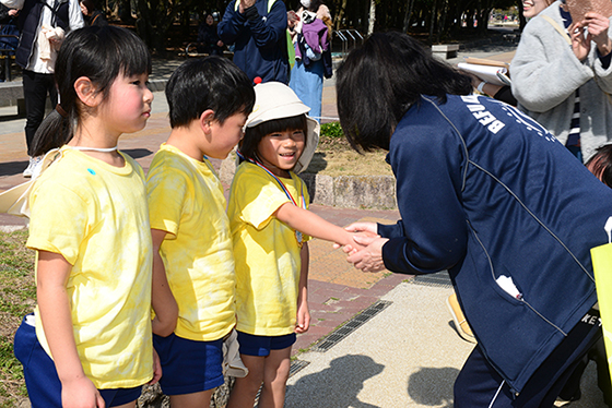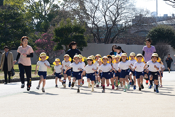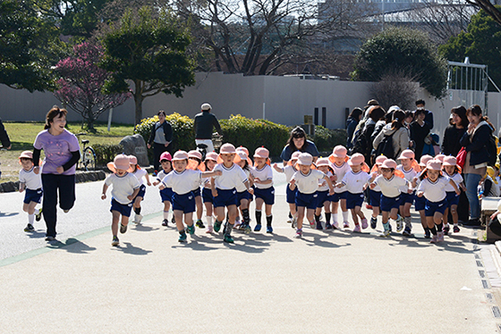 当日、お家の方がたくさん応援に来てくださったことも、子どもたちには大きな力になったのでしょう。ゆき組・ほし組・ひかり組すべてのクラスが走りきり、全員ゴールすることができました。たくましい体とあきらめない心が確実に育った子ども達の姿に感動しました。