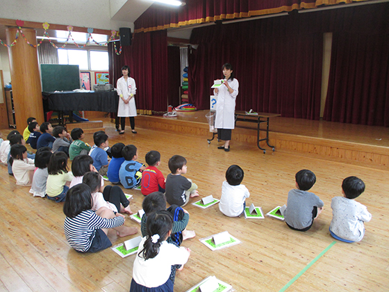 別府幼稚園では、年間6回、学研の先生が2人来られて、楽しい科学遊びの時間を設けています。