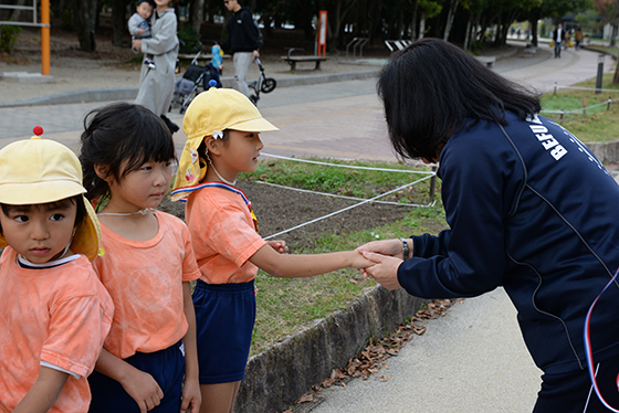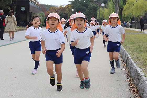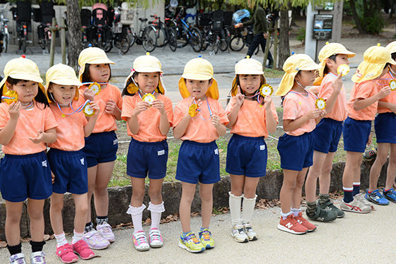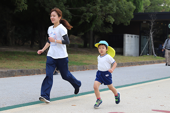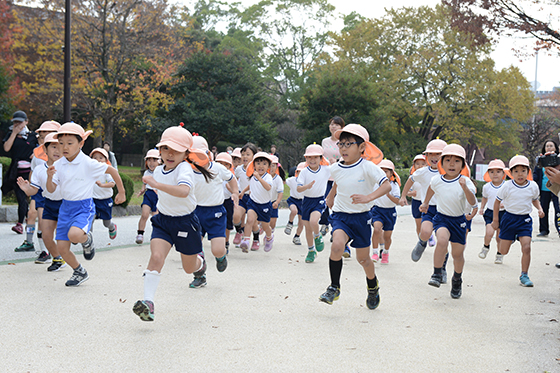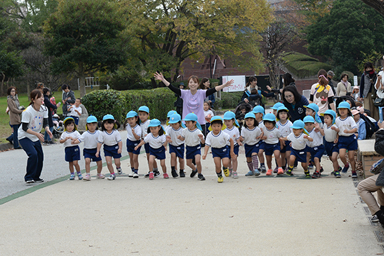 毎日少しずつ園庭を走ったり、公園まで出かけていって走ったりして、段々と距離を伸ばしてきました。当日は、たくさんのお家の方に応援してもらい、すべてのクラスが全力で走りきりゴールすることができました。最後まであきらめない子ども達の姿に感動しました。