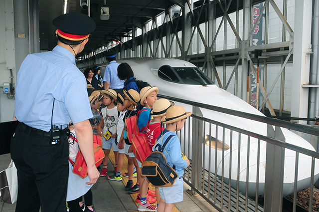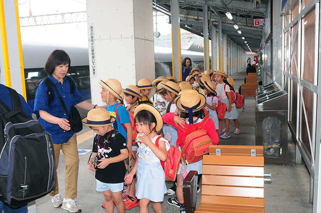 地下鉄で博多駅まで行き、みんなで新幹線に乗りました。博多駅では、駅員さんが分かりやすく説明をしてくださいました。一人ずつ乗車券と特急券を買い、重ねて改札口に通す経験もしました。一区間だけだったけど、お友達と一緒の旅ができてとても楽しかったね。