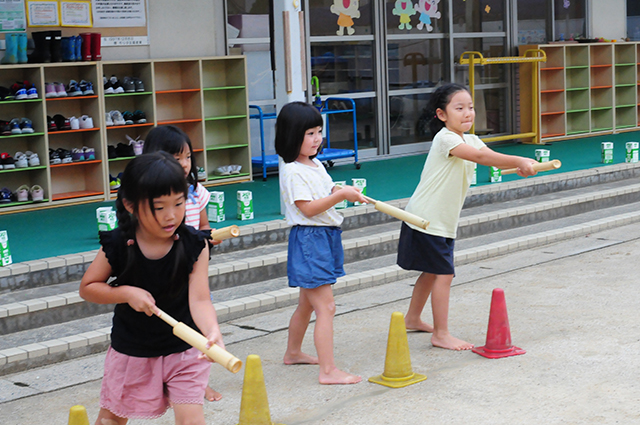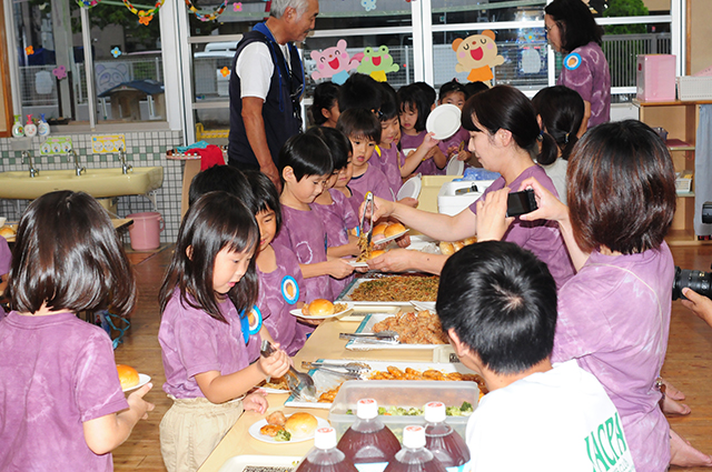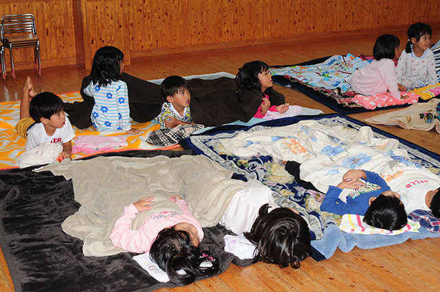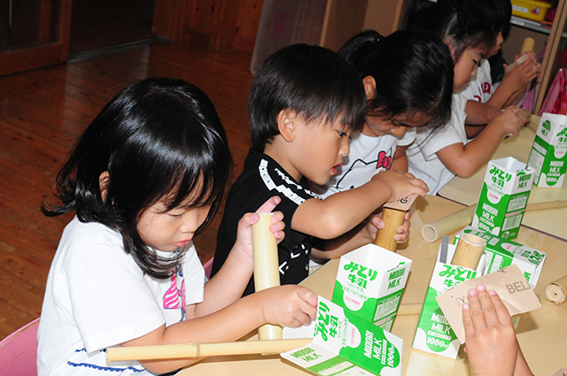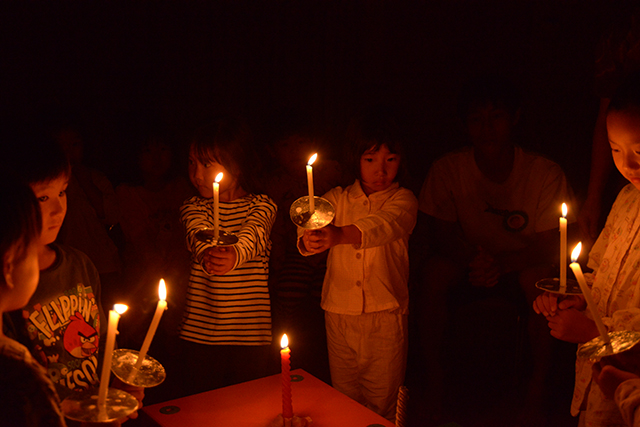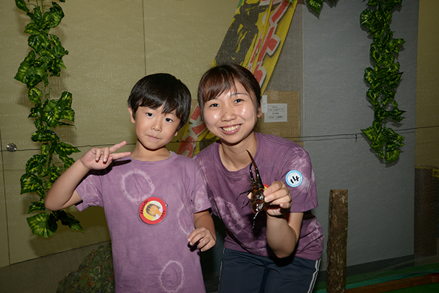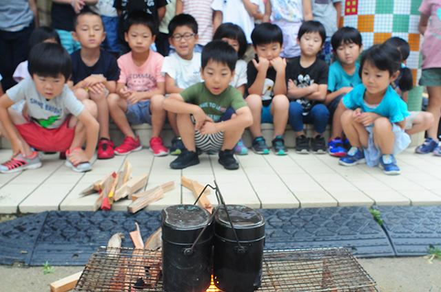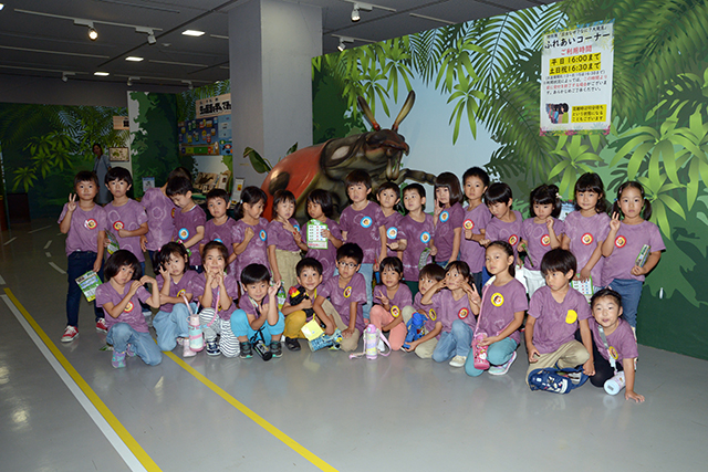 今年のサマーキャンプは、大雨のため行き先を変更して行いました。自分たちで染めたTシャツを着ての2日間。昆虫やプラネタリウム、雷の実験などを体験したり、手作りの水でっぽうで遊んだりして、たっぷり楽しむことができました。
