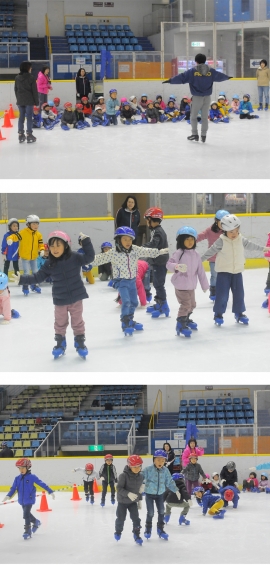 リンクの上ではツルツル滑って思うように立ち上がれなかった子どもたちでしたが、