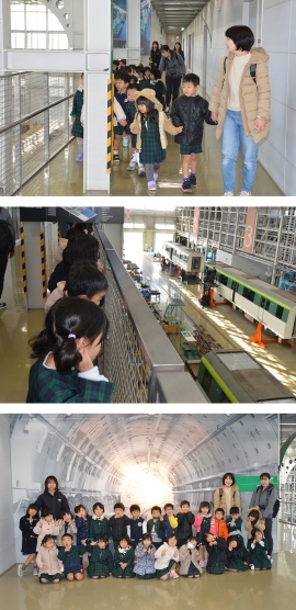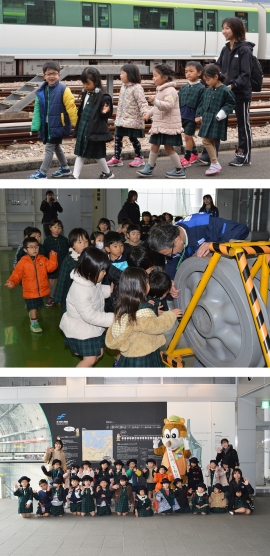 星組にとって初めての社会見学。地下鉄七隈線に乗って橋本車両基地まで出かけました。