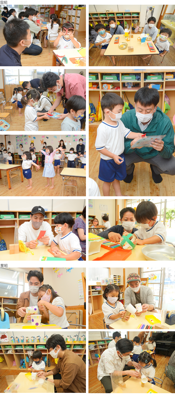 お父さんお母さんと一緒に、製作をしたりゲームをしたりして楽しい時間を過ごしました。