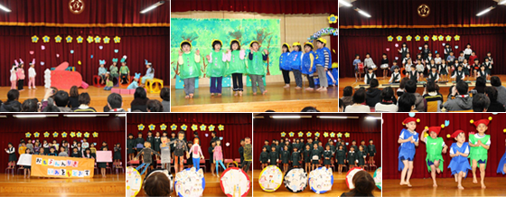 年長(ひかり組) は、楽隊、思い出、劇を発表しました。